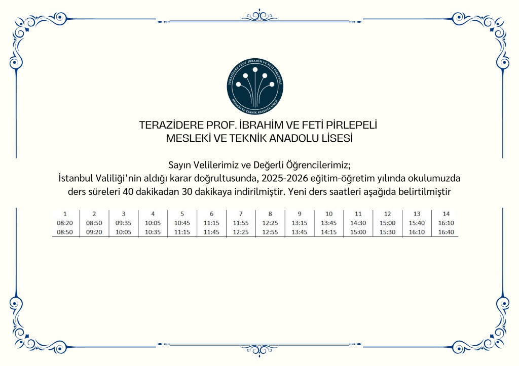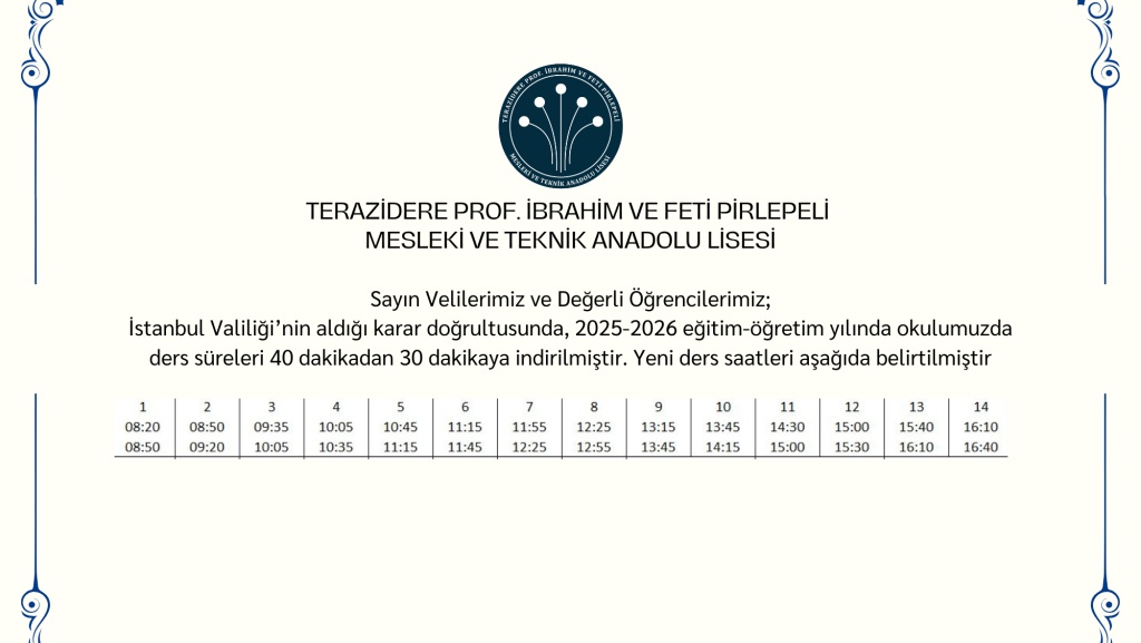 DERS SAATLERİNDE GÜNCELLEME YAPILMIŞTIR
